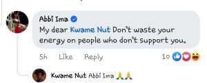 Fellow musician Abbi Ima, Bono’s Songbird, offered words of encouragement, advising Kwame Nut not to waste his energy on those who don’t support him.