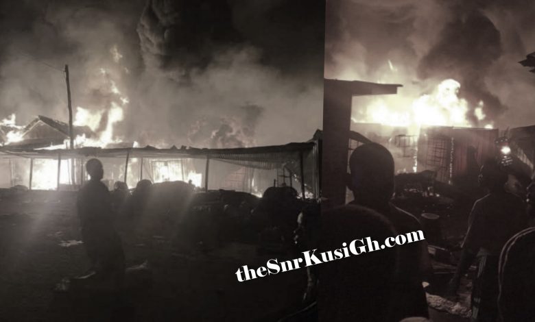A devastating fire outbreak occurred at the Techiman Market in the late hours of the night, sending shockwaves through the community. The incident was first reported by local radio presenter Gerry Gee GH, who shared a distressing video of the scene.