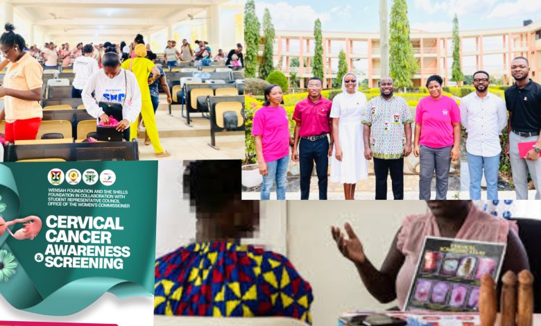 Wensah Foundation International, in partnership with She Shells Foundation International, organized a cervical cancer education and screening program for female students of the University of Energy and Natural Resources (UENR), Catholic University College, Ghana.
